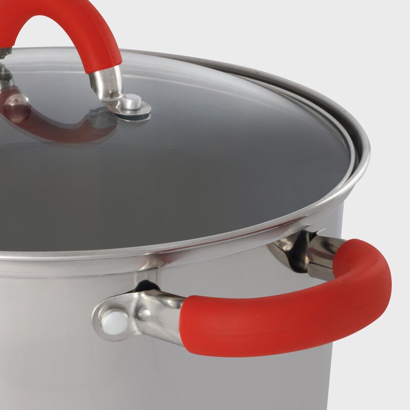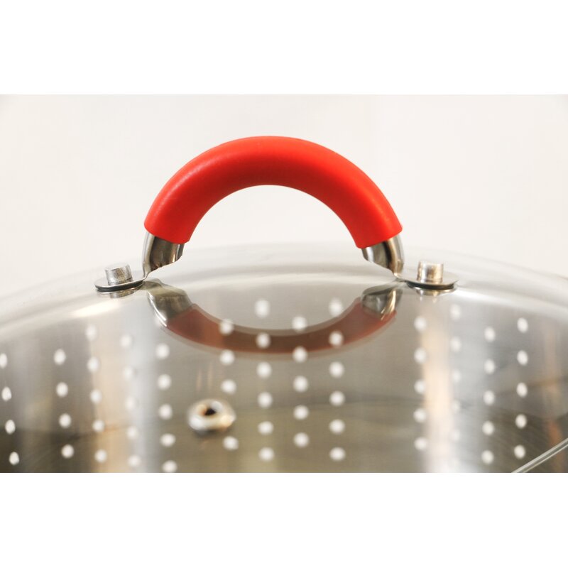 This multifunction cooker allows you to steam your favorite vegetables, cook pasta and use it as a large stock pot. The encapsulated base provides faster and even heat distribution. Constructed in 18/10 stainless steel and induction stovetop ready. Now features silicone-covered handles and a knob for easy grip and stability when transporting a stock pot filled with food.