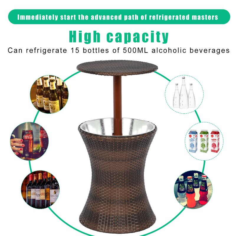 Ice buckets, and drink coolers, are good helpers to cool down and relieve the heat in summer. Put the ice cubes in the bucket with the drink, and it can keep the cooling effect for several hours. This refrigerated bar table is a must-have accessory for outdoor events such as BBQs, family unions, and summer parties. This ice bucket can hold about 15 bottles of 500ml drinks. It is no problem for 5-8 people to use. If it is used for cold beer, it can also provide a chance for 2-3 people to drink freely.