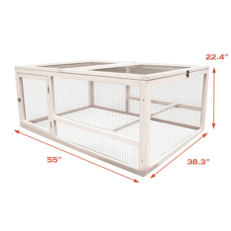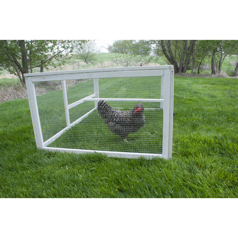 ​This is a great stand-alone pen that can also be used with the Homestead Coop-#222-87 for added space or used alone and moves around your yard. Includes roosting bar. Easy access to chickens through the top and side door. Doors are hinged and locked. Perfect for up to 4 birds and also if you are raising chicks!