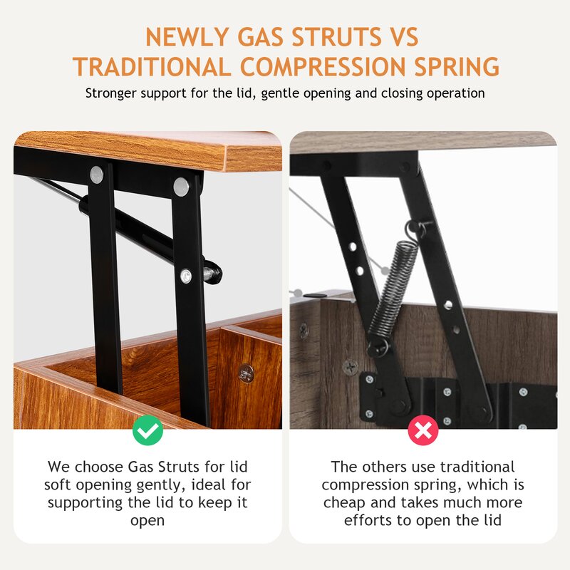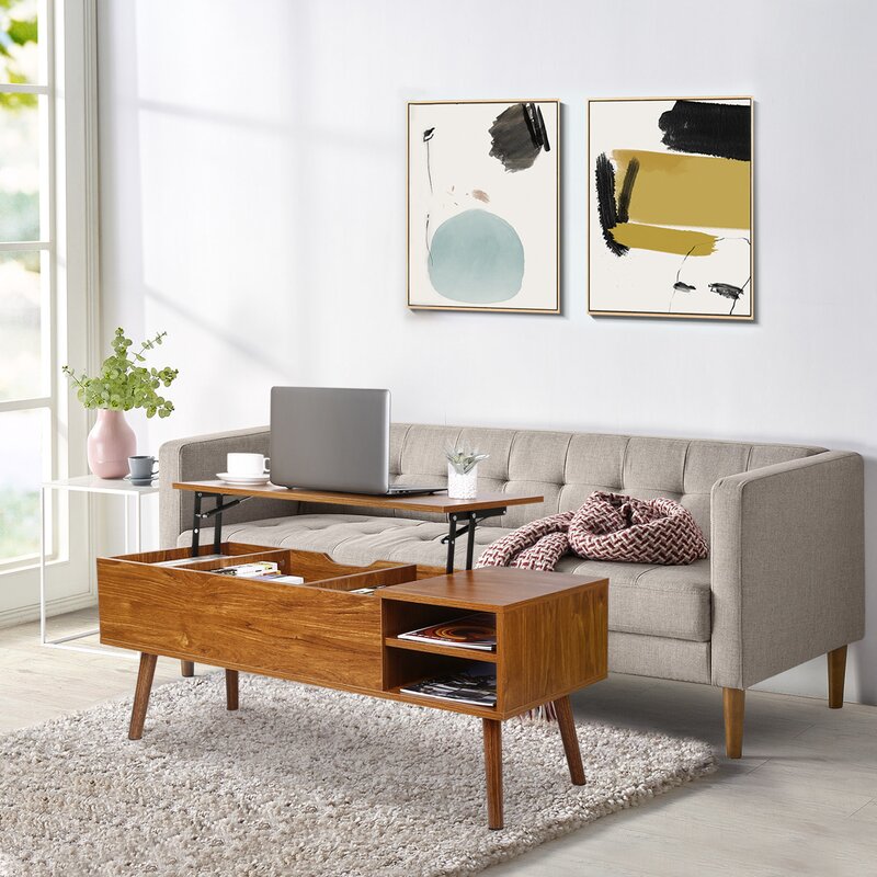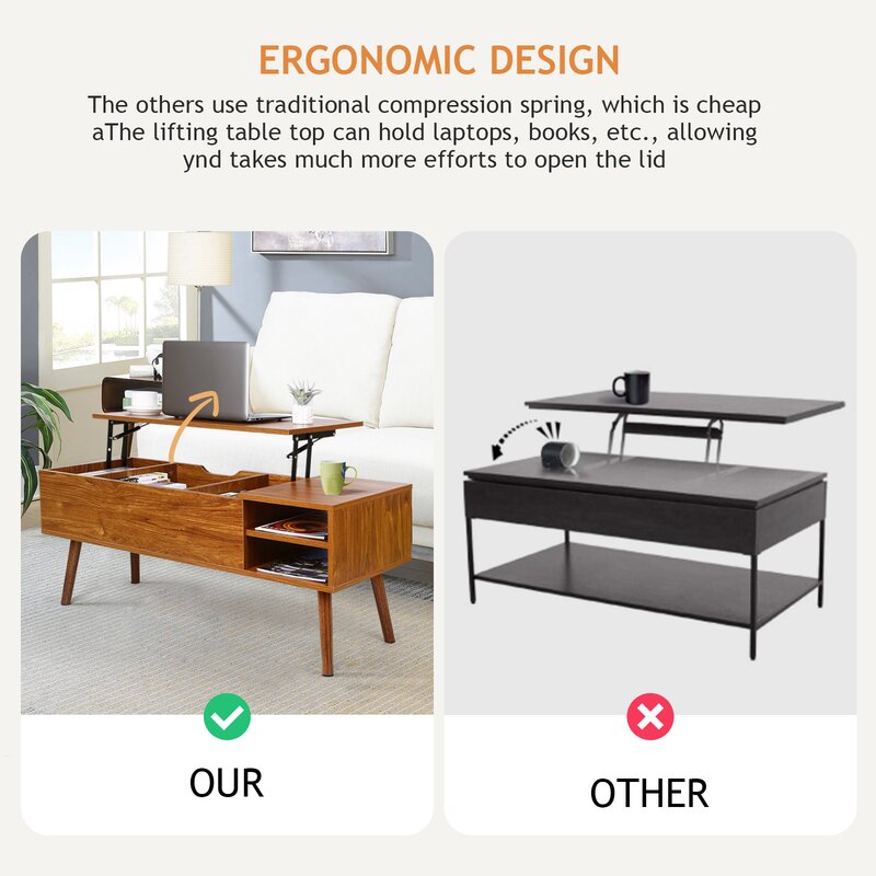 A sturdy lift-top table is easier to lift up and close, with a larger hidden compartment and adjustable storage shelf. The top height after being lifted is perfect for working, writing, and eating. When you are not working you can just put it down and have it be a regular coffee table. The awesome hidden compartment is deep enough to hold your laptop, chargers, and more! Functional, affordable, great addition. Good value coffee table for small spaces or tight budget! Lift top coffee table is a beautiful and practical table that is designed with a lift top, which can be easily lifted up to have a suitable and comfortable height to use a laptop, write or dine while relaxing on the couch.