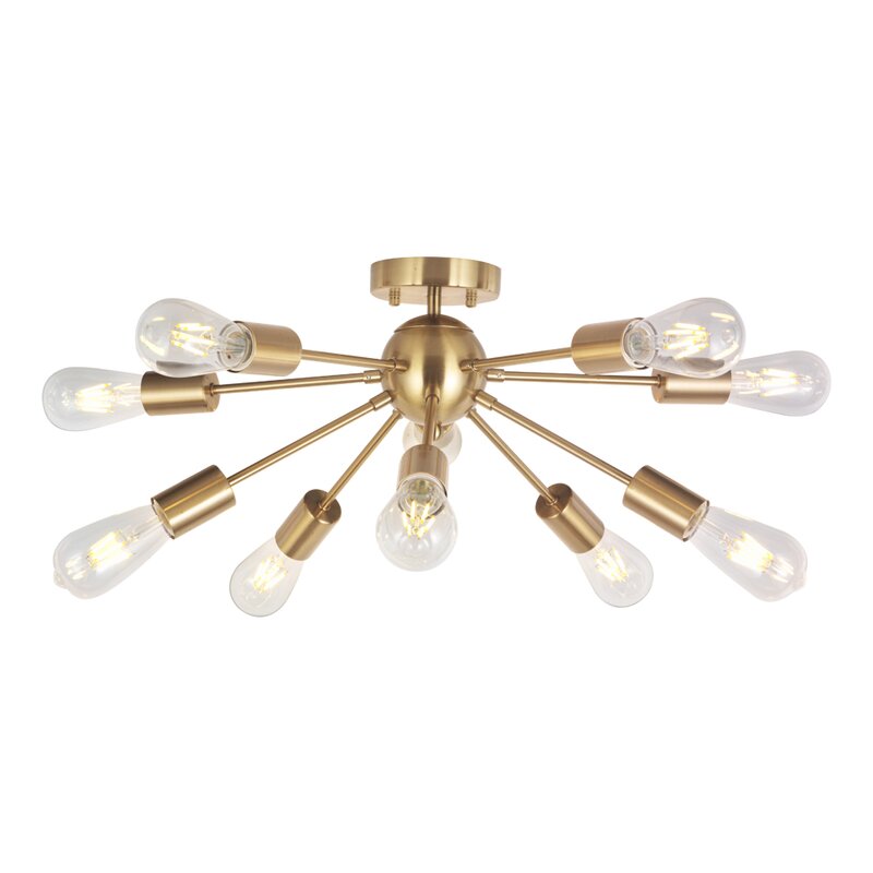 One 10-socket brushed brass ceiling light flush mount fixture with matching stem and canopy. It creates a romantic atmosphere and brings a natural feel to you.