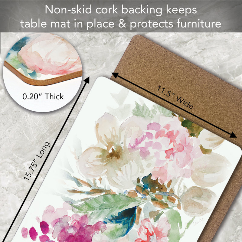 Set of 4 Decorative Hardboard Placemats with a Cork Backing. Placemats arrive in elegant gift box that can also be used to store them. Made with a layered construction. The surface of the mats is coated with protective lacquer. Heat resistant to 212 degrees Fahrenheit. The art is laminated to a wood composite layer. A soft cork backing protects the table surface from scratches. – Beautiful artistic design allow the Placemats to remain displayed even when not in use. Leading, Trending Artists in the industry work with us to create artistic designs that will add beauty and distinction to your Dining Space. Decorative Placemats are an easy way to change the look of your kitchen, dining room, or outdoor eating area. Placemats measure 15.75†L x 11.5†W and are rectangular in shape. Look for Cala Home matching Hardboard Coasters to complete your Tabletop Design.