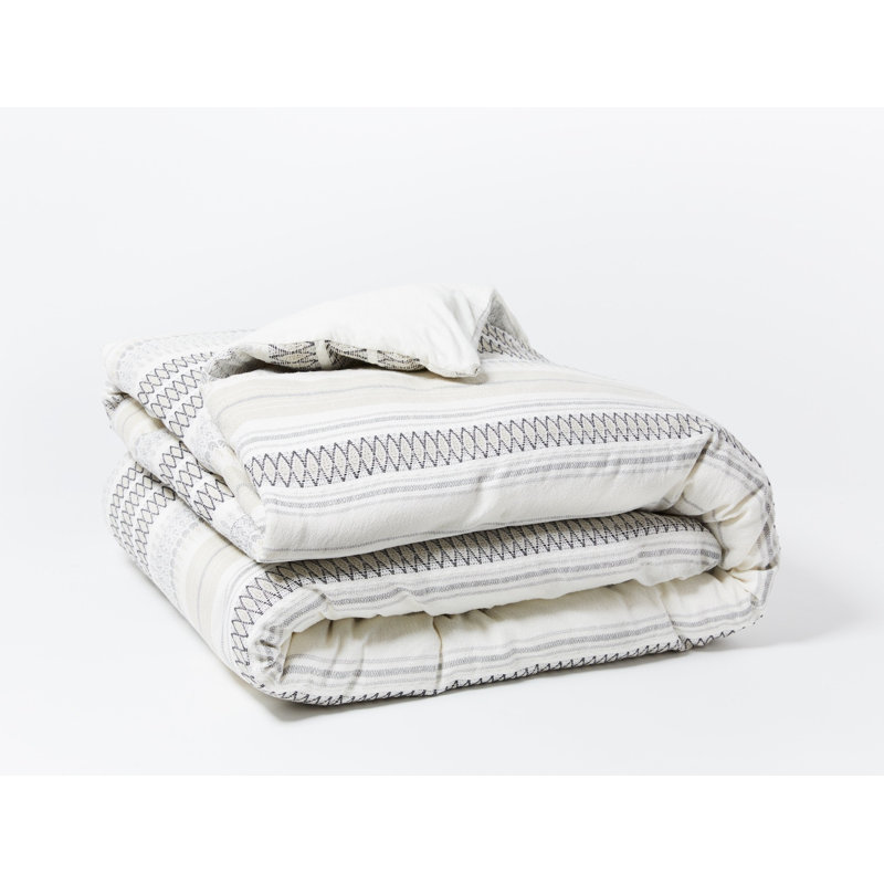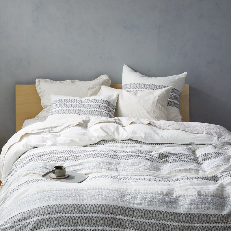 This duvet is VERY beautiful. Lovely colours of white, cream/beige, light grey and dark grey. It goes really nicely with our dark bedroom furniture and light grey sheets (the Coyuchi crinkled percale). My only reason for four star instead of five is that it’s quite heavy – it’s not light and airy. It has heft – sort of like an embroidered pillow I personally am a hot sleeper and prefer things to be light. Then again, perhaps it’ll be a different story in the winter. But rest assured, it’s beautiful and really stylish and calming for a serene natural-looking bedroom.
