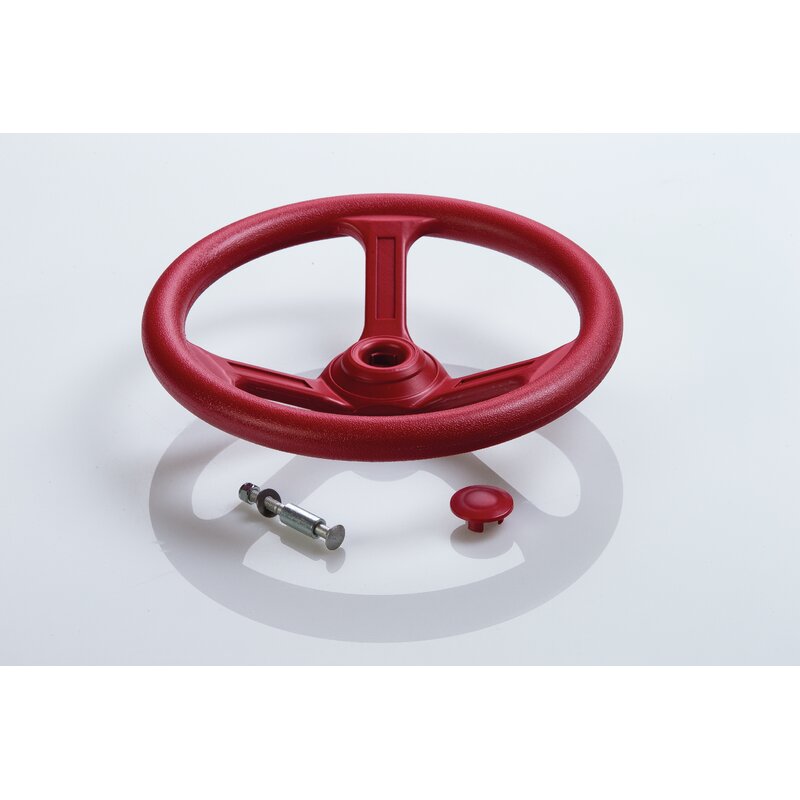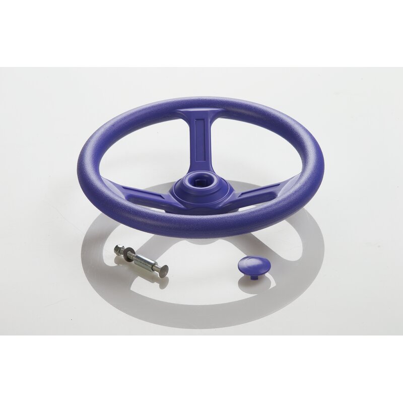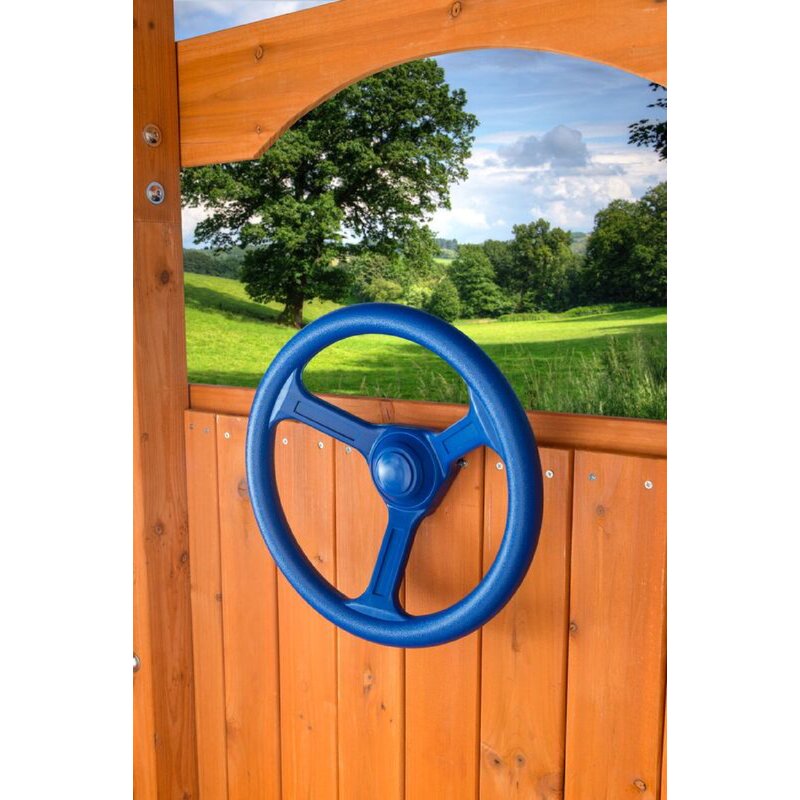 Plastic steering wheel can be attached in minutes with do-it-yourself swing set hardware and will remain secure through years of adventurous playtime