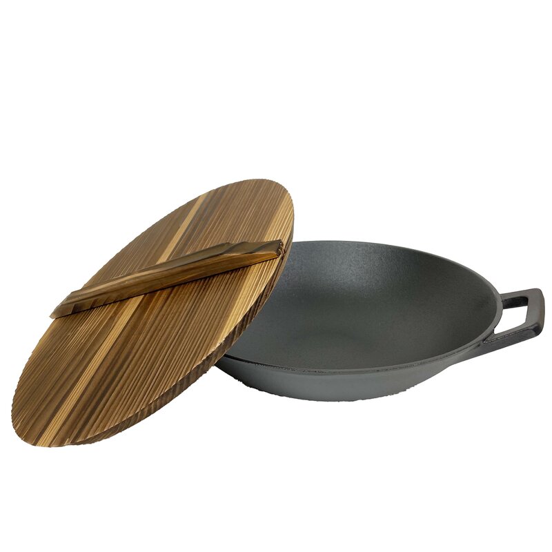 Cuisiland 14” Cast Iron Wok with Lid (Part number: JJ014LID) (Set of 2)