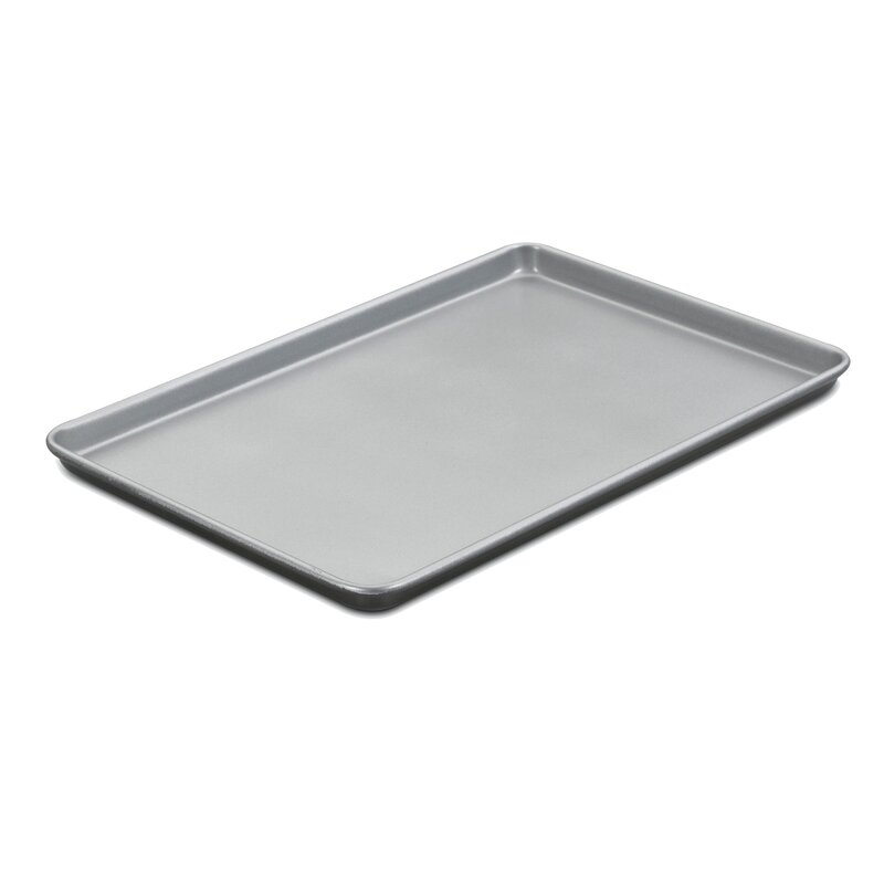 Ideal for today’s cooks. Constructed of aluminized steel to provide even heat distribution and consistent baking results, the non-stick interior and exterior ensure easy food release and cleanup, and the extra thick rolled edges prevent warping. Baking sheet is dishwasher safe for the ultimate cleaning experience.