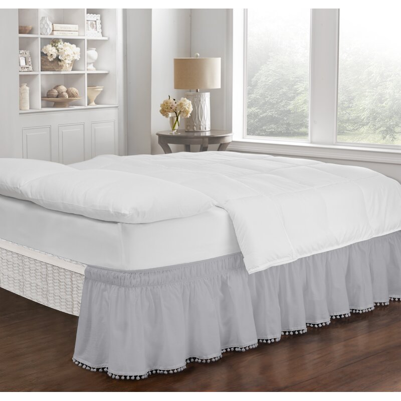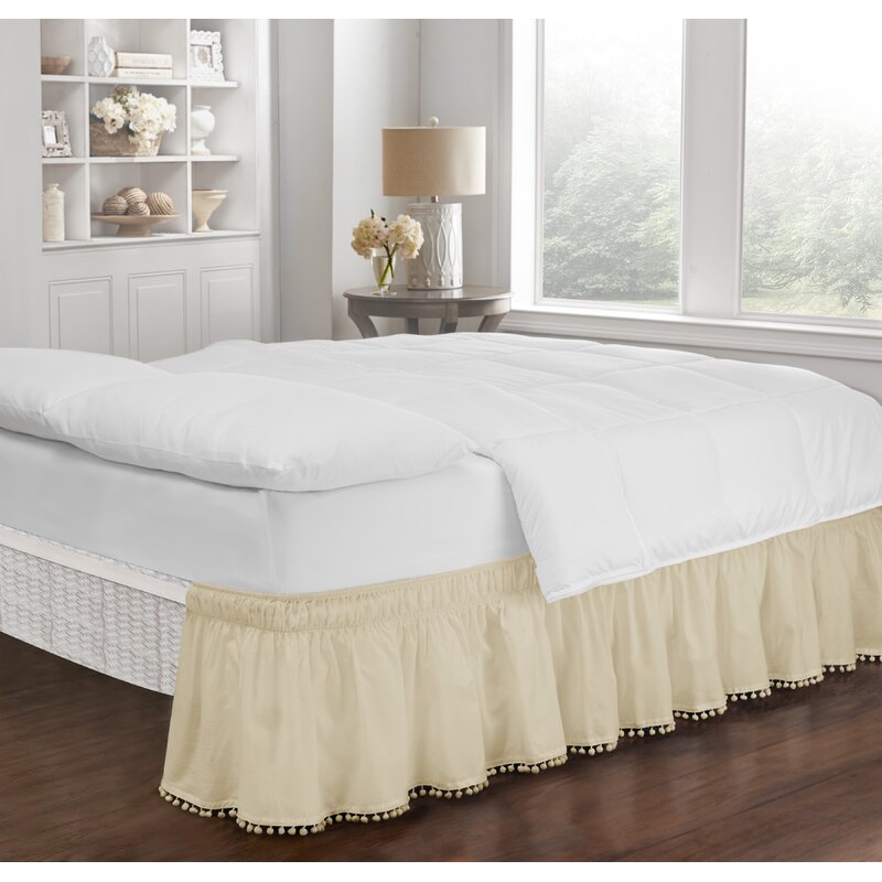 Searching for something special to spruce up the master suite? Start with your restful retreat! Give your beautiful bed a quick refresh with crisp cotton sheets and a sumptuous comforter, sure to have you slumbering in resort-worthy allure. Next, go for bold boho with a pile of plush patterned pillows and tassel-trimmed throw blankets to effortlessly make it all your own. And finally, tie it together with this stunning bed skirt. Crafted of cotton and polyester, it loops right around your mattress for a tailored look. Though its versatile solid hue may seem simplistic, this elegant accent gets a glint of gorgeous grace thanks to the posh pompom trim along the bottom edge.