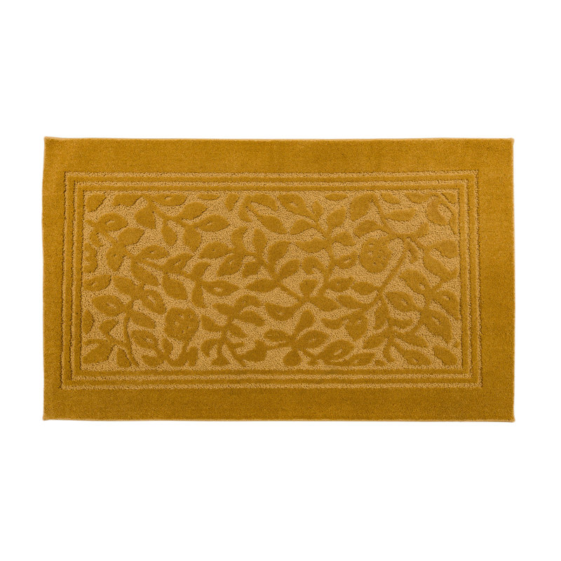 The gold rug matches our powder bath decor perfectly! It is more of a muted gold, not a bright gold, which is what we wanted. It’s plush and feels good under the feet. Two thumbs up!