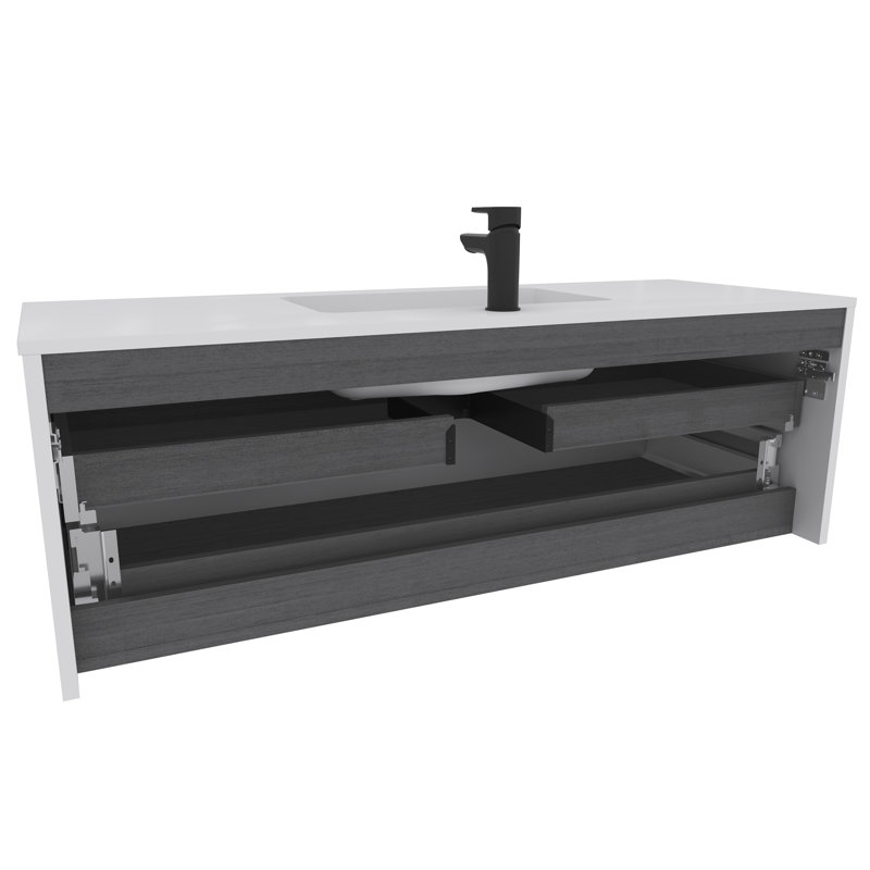 At 48″ wide, this wall-mount bathroom vanity base will be a key addition to any bathroom remodel or update. Constructed of high-quality melamine, this base has a modern design that can also be paired with a classic space. The piece comes equipped with a large soft-closing drawer that contains two levels of storage inside. The sleek design of the framed panel provides an elevated look that is often missing in similar pieces. Made in Italy, this vanity base was created with care and precise attention to detail that will ensure this piece will be an eye-catching feature of your next project.