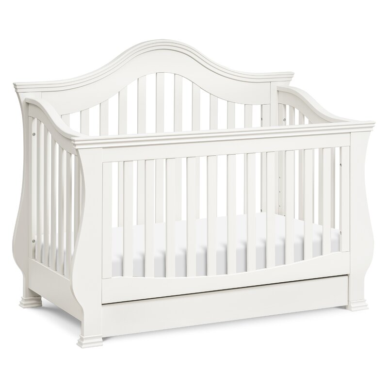 The Ashbury 4-in-1 Convertible Crib is adorned with elegant curves and luxurious details. The arched back-panel and thick slats are sturdy and provide solid support for baby. Winged corners and curved posts elicit traditional charm, and the spacious under-drawer provides extra storage for baby’s essentials.