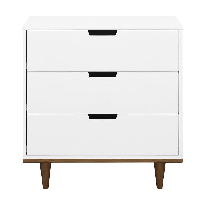 Tuck away all your baby’s needs in the clean-lined Marley 3-Drawer Dresser. Designed to pair with the popular Marley Crib with matching wood peg legs, or add a pop of personality to any modern nursery, the Marley Dresser features three spacious drawers on smooth, pre-installed ball-bearing metal glides for easy assembly and accessibility. Pair with an available removable changing tray for a functional and stylish addition to the baby’s space.