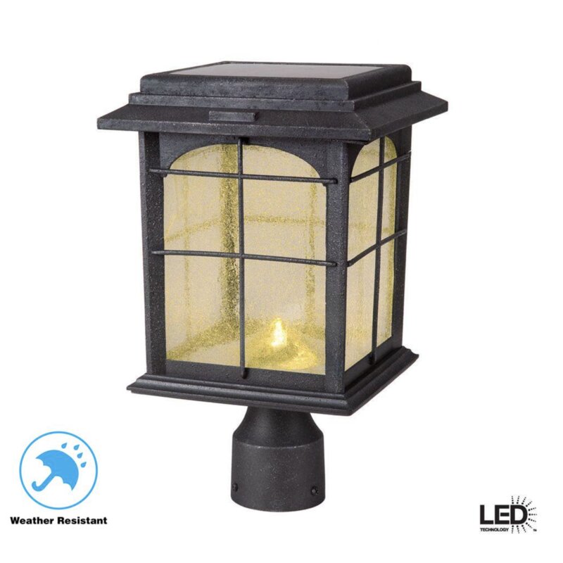 This Deck Impressions solar hand-painted outdoor post lantern with seedy glass shade and 3000k warm white LEDs creates an impressive addition to any home. Perfect for illuminating exterior walkways, patios, and porches. At 139 lumens, you’ll enjoy 10 hours of uninterrupted illumination. The aged-iron finish is applied to weather-resistant aluminum construction for years of maintenance-free operation (no bulbs to replace!). Included with your led deck light are all necessary hardware and battery(s).