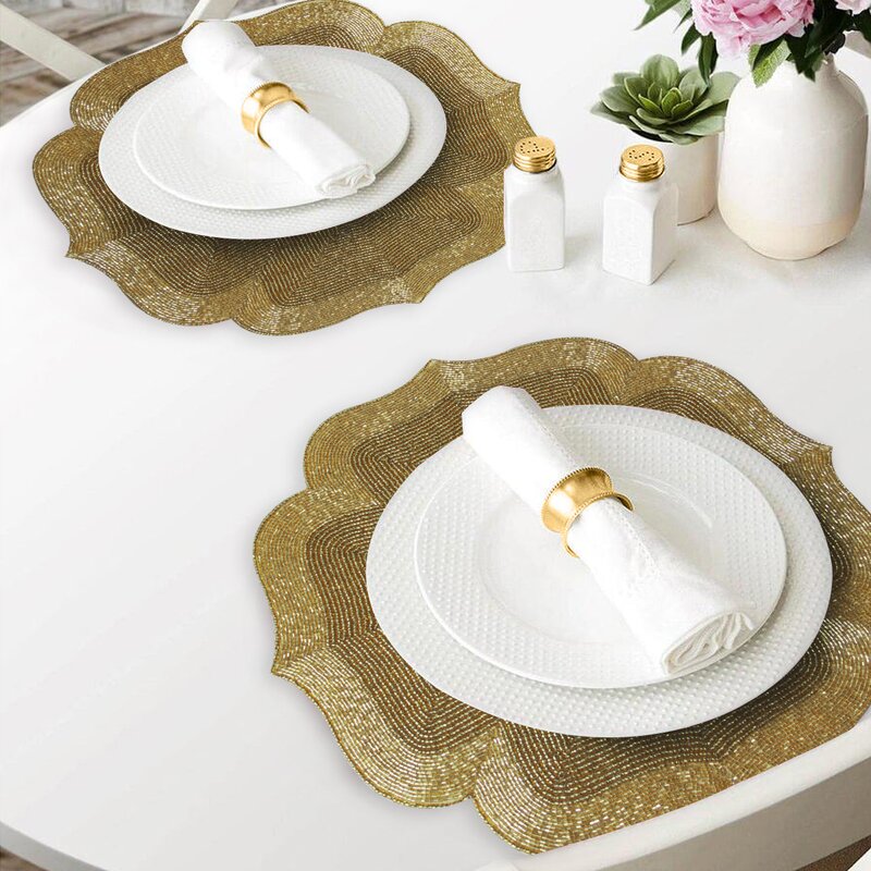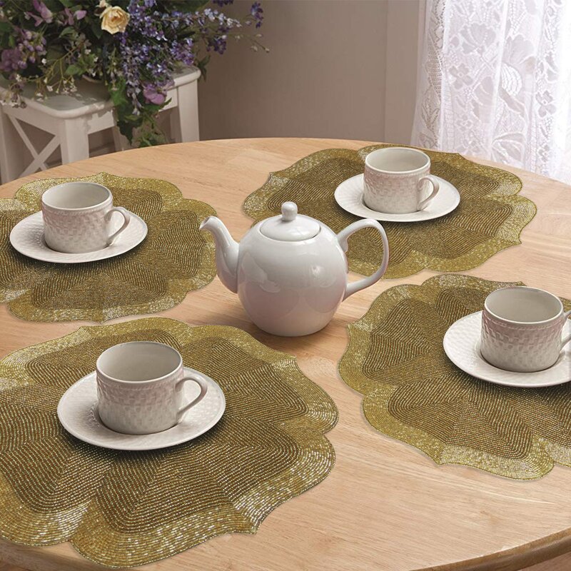 Handmade: These beaded placemats are meticulously crafted and embroidered with high-quality glass beads to form a complex patterned composition. Given their handmade and hand-finished nature, slight variations in appearance can be expected.