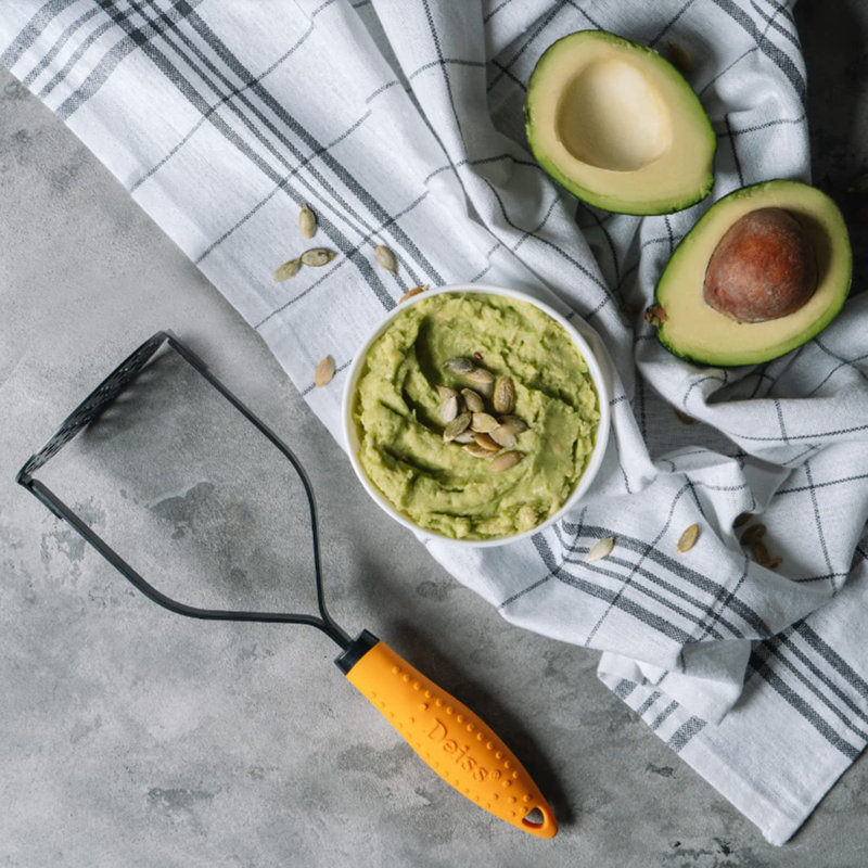 Constructed of durable stainless steel with an ergonomically designed soft-grip rubber handle for comfort, this potato and vegetable masher can be used to make light of a variety of everyday tasks and for a multitude of recipes including mashed potatoes, cauliflower mash, butternut mash, bean dip, guacamole, and many more.