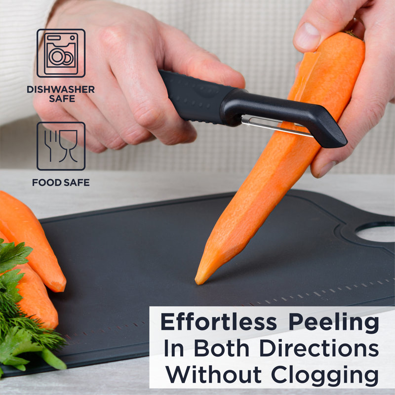 PROFESSIONAL GRADE VEGGIE PEELER: You may not be a professional chef, but when you use our food peelers, you feel like one. With ergonomic design, soft-touch rubber handle, comfortable non-slip grip, peeling has never been easier, even for those with Arthritis.
