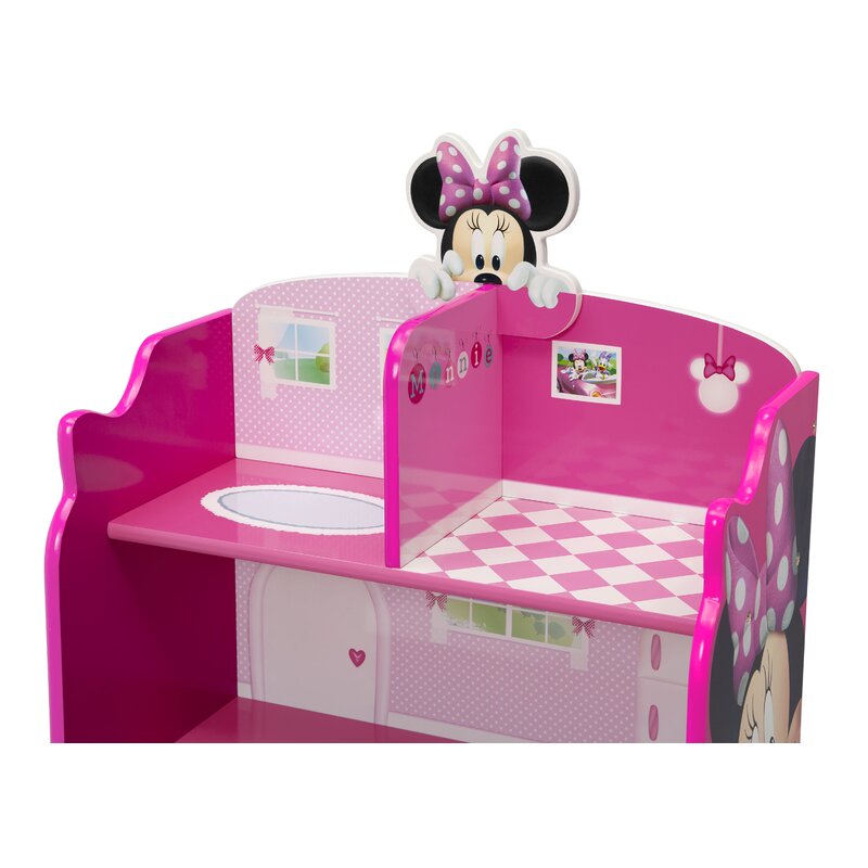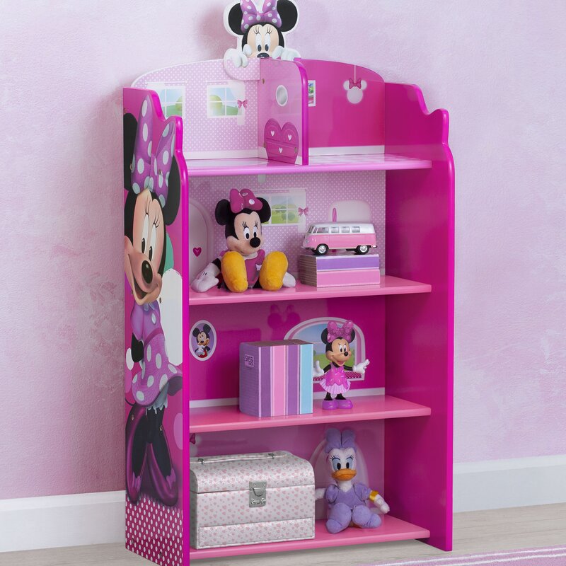 Add Minnie mouse’s iconic style to any kids’ bedroom, playroom or clubhouse with this playful Minnie mouse wooden playhouse 4-shelf bookcase. The versatile design allows it to be used in multiple ways–use it as a traditional bookcase with four spacious shelves that give kids easy access to their books, games or toys or as a playhouse where the decorative back panel serves as a colorful imaginative backdrop. Constructed from durable wood with a scratch-resistant finish, this bookshelf will withstand years of use. About Minnie mouse: sweet, stylish and a lover of all things polka dot, Minnie mouse spends her free time dancing, singing and hanging out with her lifelong sweetheart, mickey. Help bring her cheerful spirit to your little one’s room with this item’s colorful collection of Minnie mouse kids’ furniture.