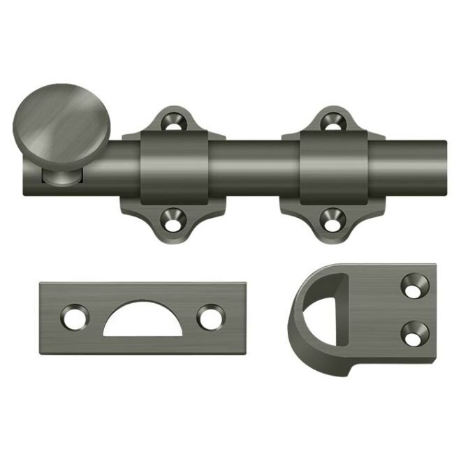 Deltana is an architectural hardware manufacturer with a proven record for exceptional service and quality. Deltana inventories America’s largest selection of architectural and door hardware in over nine fine finishes made from solid brass, zinc, aluminum, steel, and stainless steel. With an array of fine finishes, finding hinges, bolts, bumpers and stops, ball catch, roller latch, door accessories, and home accessories that compliment your home’s decor. The door bolts are used to fasten both the lower and upper leaves of any Dutch door.