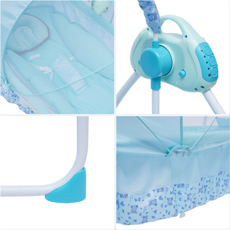 This electric bassinet is suitable for babies from birth to 18 months. Built-in 12 soft music to soothe your baby. Bluetooth design allows you to play music on your phone by connecting Bluetooth. The bassinet makes your baby feel comfortable and the safety fixing belt is designed to prevent rollover and also protect their fragile spine.