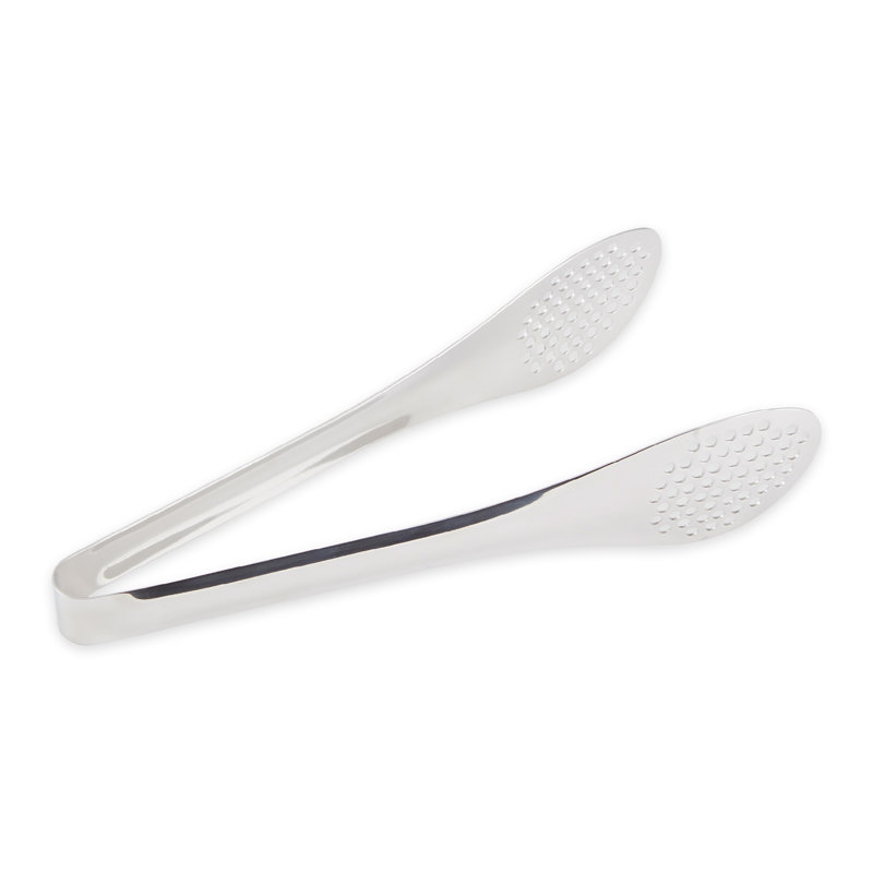 Tongs measure 9.88-inches in overall length, including 2-inch wide by 6.25-inch long slotted bowl end.