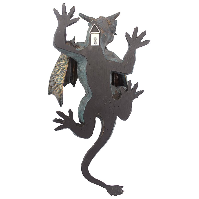 At more than a foot long, this striking gargoyle hangs on the wall only to look back over his shoulder and mischievously taunt that he is, indeed, “on the loose.” With tall horns, spiny claws, a menacing face and muscular wings, he seems ready to wreak havoc wherever he goes. Add this hand-painted designer resin beast to your home or garden – or wrap him up for that brave recipient on your gift list.