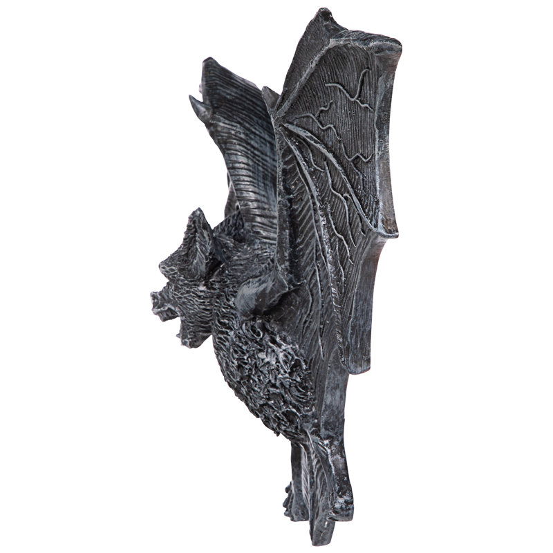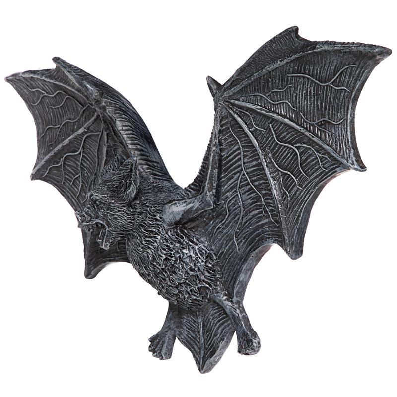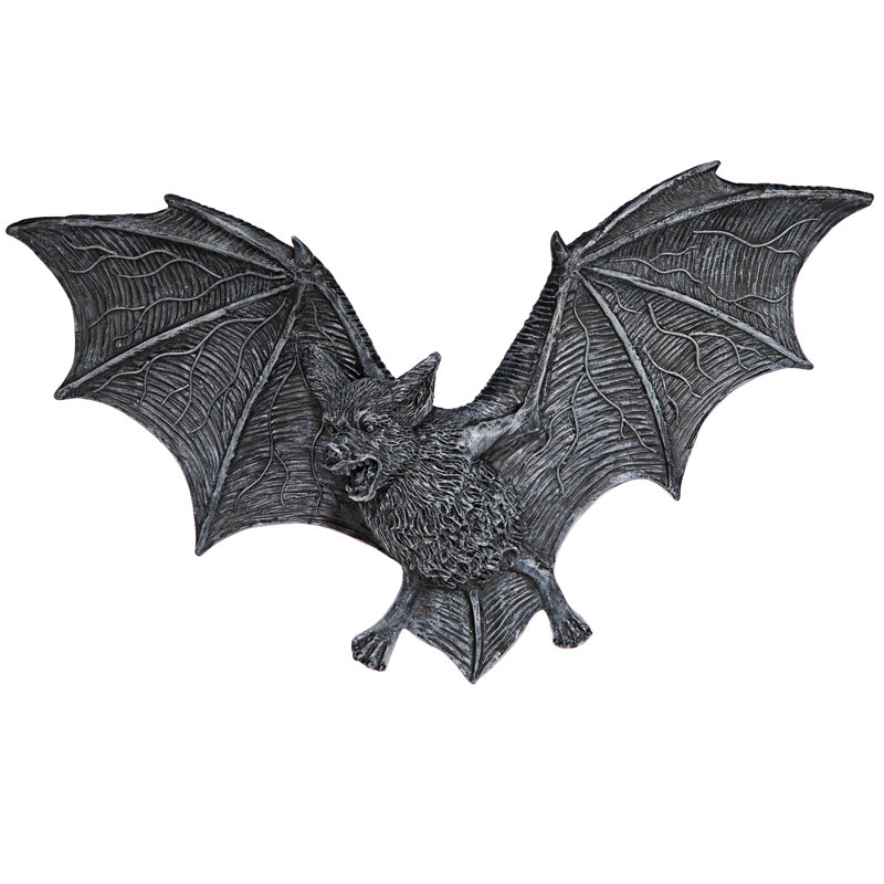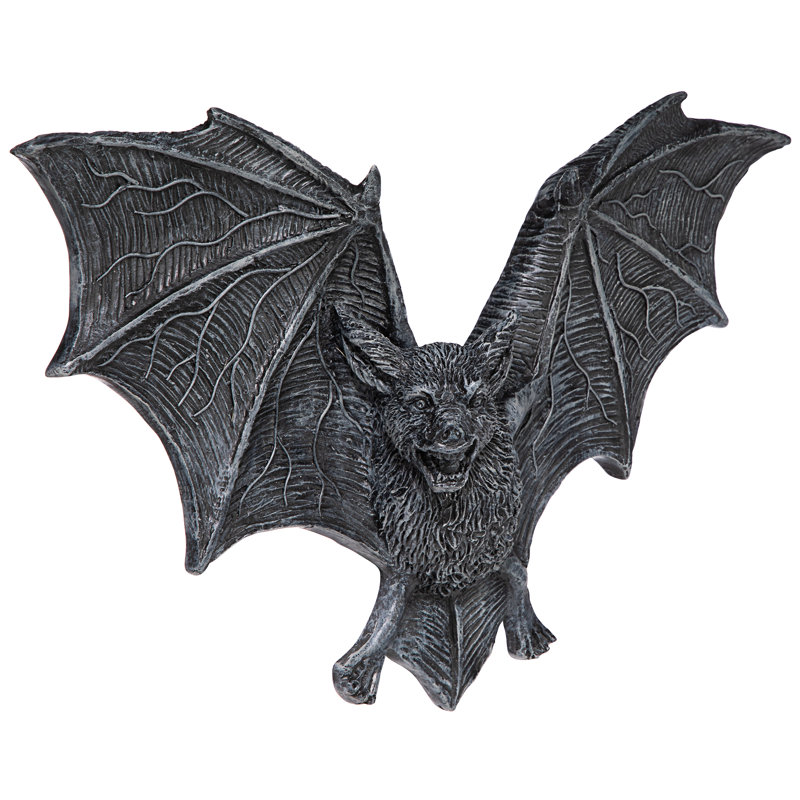 With wings open wide, this Toscano-exclusive, gray stone-finished designer resin bats will add an eerie ambiance with their frightening eyes and menacing fangs. Whether hanging on a wall or on a ledge in your home or garden, choose a pair to leave an impression or display a colony to make your dungeon downright sinister!