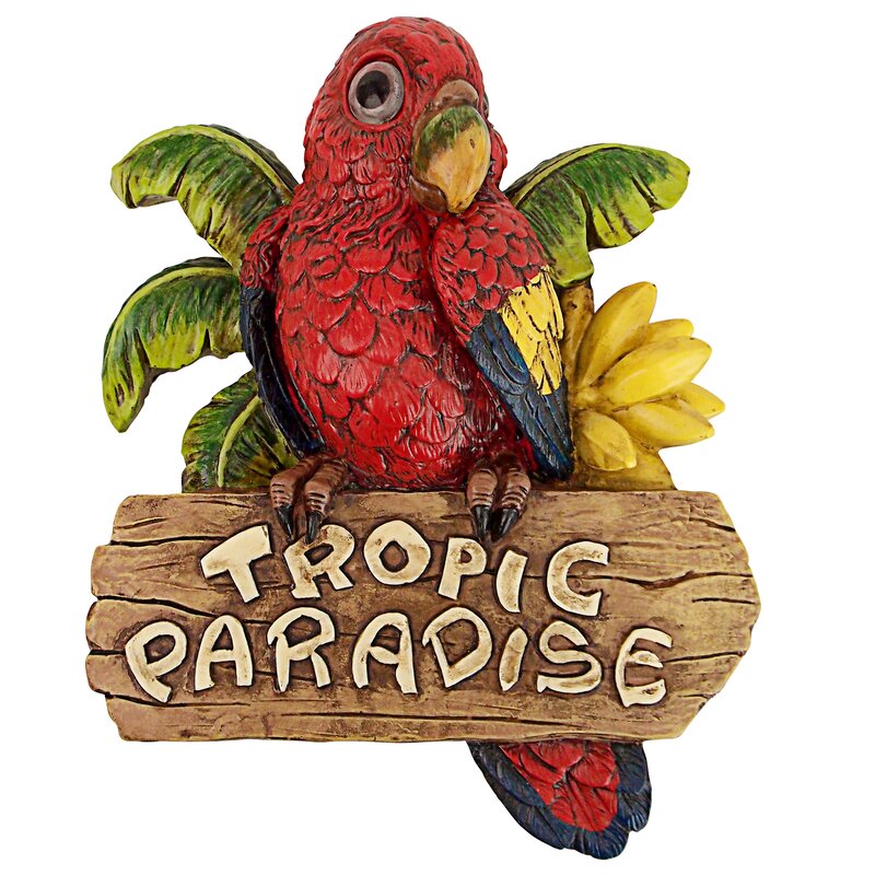 Choose this colorful scarlet macaw parrot mascot to welcome guests to your pool, patio, or tiki bar with all the fun-loving spirit of the tropics. Declare every day a holiday with our design Toscano original scarlet macaw parrot welcome sign wall sculpture that’s cast in quality designer resin and hand-painted in splashy, island-drenched tropical hues for year-round color and fun in your home or garden.