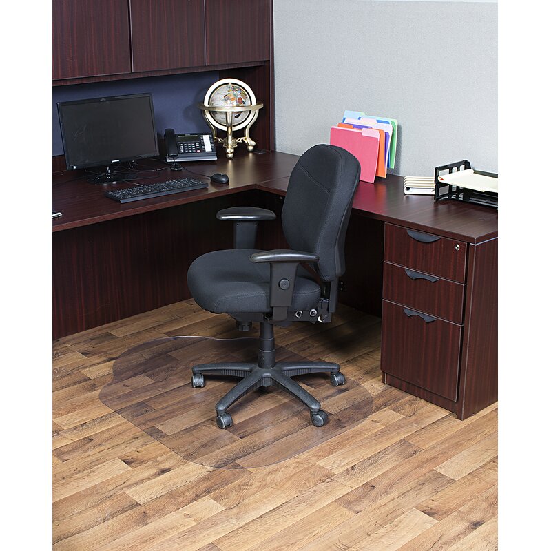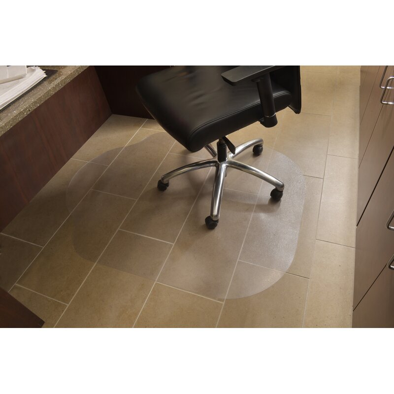 Evolve hard floor straight edge with lip chair mats are the result of extensive research on how times move in Timex’s workspace relative to today’s office chair and contemporary furniture designs. The wide tapered front lip and radius back corners of the mat work in concert with the circular footprint of the 5-star wheelbase to offer more efficient use of the rollable surface of the mat, keeping the wheels on the 1″ thick mat in the most critical area where the lip meets the rest of the mat. Replacing or repairing hardwood and laminate floors can be expensive. Protect your investment with a durable Evolveâ„¢ chair mat that is engineered to protect your floor from wear due to the wheels of your office chair rolling back and forth over time. Perfect for all flat hard floor surfaces including wood, laminate, vinyl, concrete, stone, and tile.