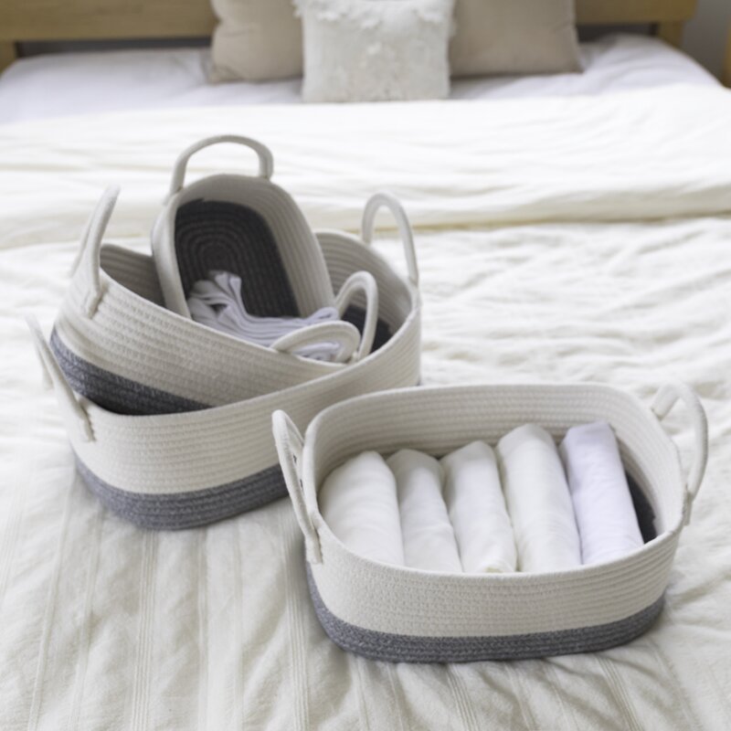 I love these baskets! The fact that they vary in size helps make them useful for lots of different things. We are using two for books and storage and two for nursery storage. I like them best used separately as opposed to right next to each other.
