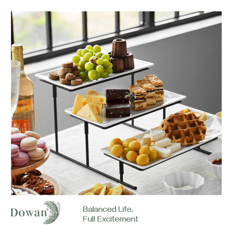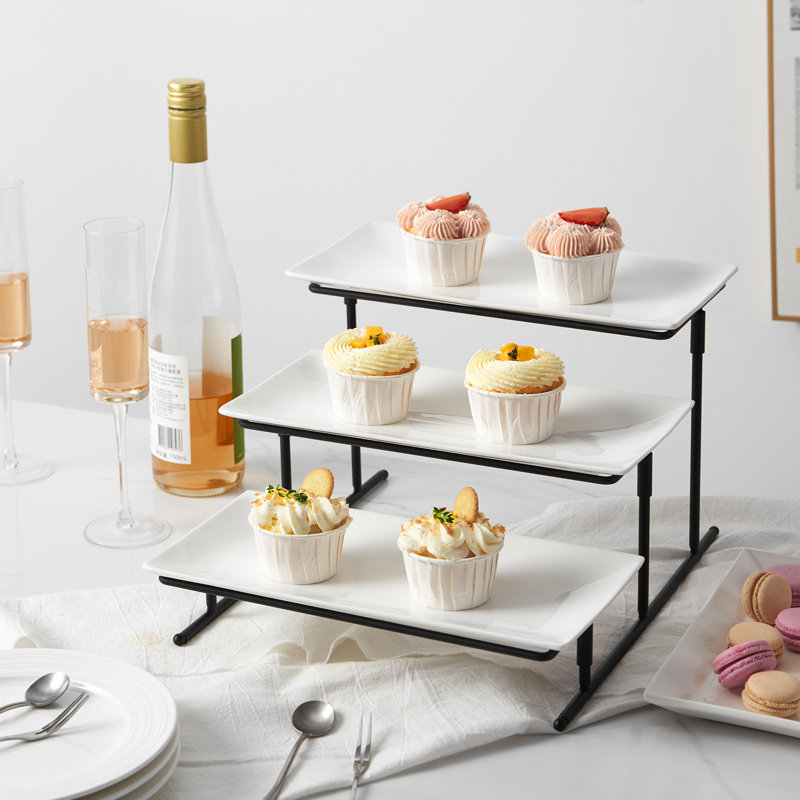 The overall appearance design is relatively simple, elegant, and has a sense of luxury;Present delicious appetizers and desserts using this simple yet elegant tiered serving tray. White glossy surface, easy to match with various kitchen utensils, It makes a great display at parties, It also works as a vegetable or fruit rack for your kitchen counters.