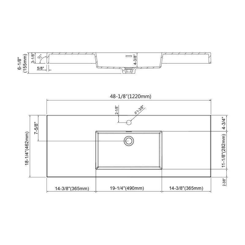 Sink Basin : 19” L X 11” W