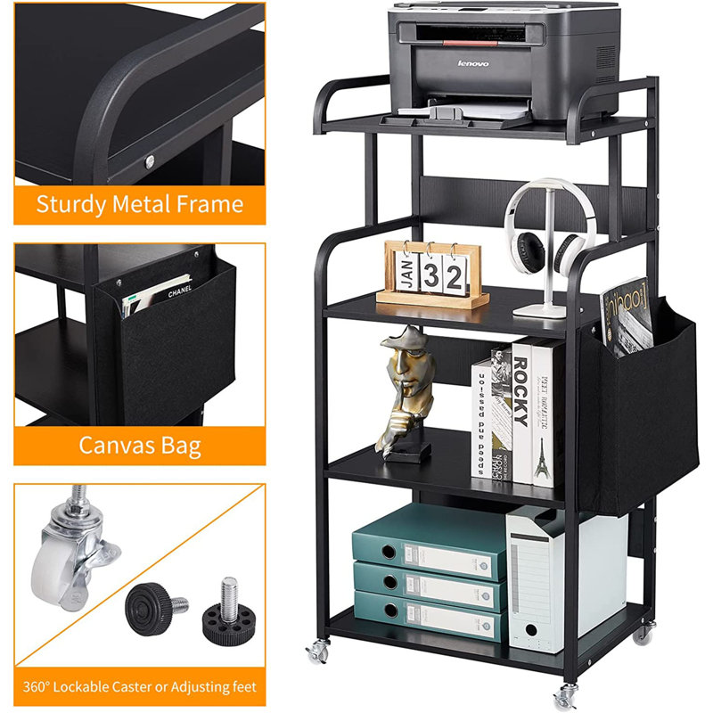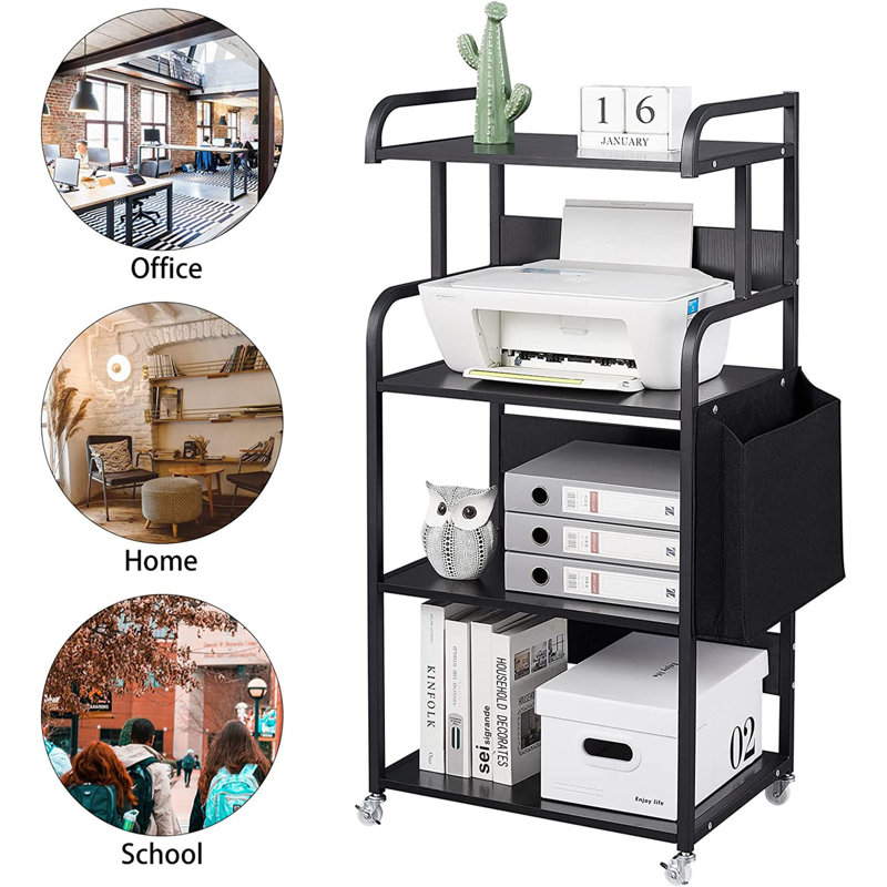 The removable printer stand features 4 open storage shelves and a large storage pocket. It will effectively provide you with more space.