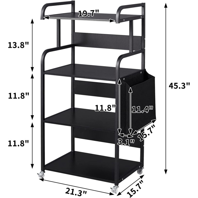 The 4-tier storage cart can be used in your study, home office as a printer stand and bookshelf, or in your kitchen as a microwave shelf. This cart is great for storing books, documents, stationery, tableware, etc. in your office, kitchen, bedroom, cafe, restaurant, etc.