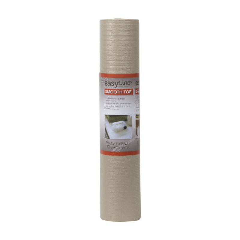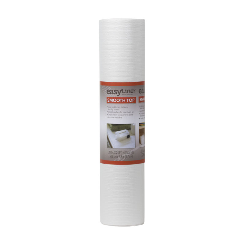 Smooth Top Easy Liner Brand Shelf Liner provides an easy-to-clean surface for cabinets in your kitchen, bath, and laundry room. The non-adhesive grip bottom keeps the shelf liner in place and doesn’t leave a sticky residue, while the smooth top lets you easily slide objects across. With a variety of colors and trendy patterns, you can bring new life to cabinets – just cut, apply to your surface, and style away.