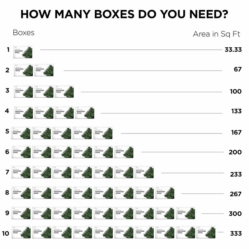 This artificial hedge of Milan is made from lightweight yet super-strong high-density polyethylene. That’s soft to the touch but looks realistic. Eco-friendly and does not release toxic chemicals; recyclable. Each panel features interlocking connectors for easy do-it-yourself installation. Can attach to any wood frame or chain link fence and wall easily. One box covers 33 square feet.