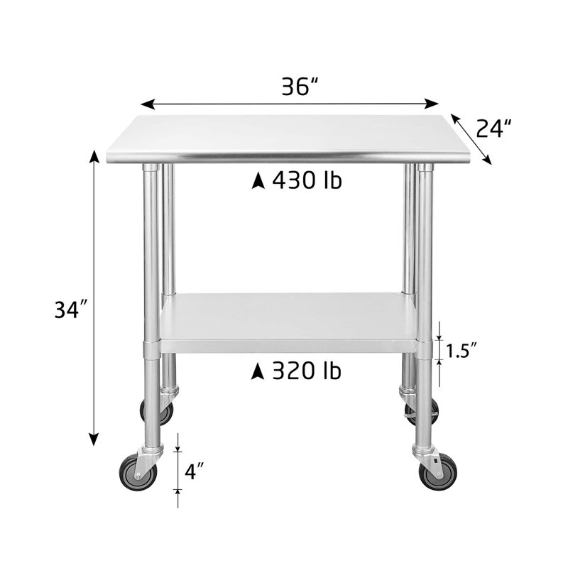 Every chef knows that the efficiency and smoothness of a delicious meal depend largely on reliable and easy-to-use kitchen equipment. The design, functionality, and overall quality of this worktop are impressive. Use the top shelf to prepare ingredients, chop your garlic and onions, or mix sauces and marinades. Use the bottom shelf for extra kitchen storage for your appliances and other essentials