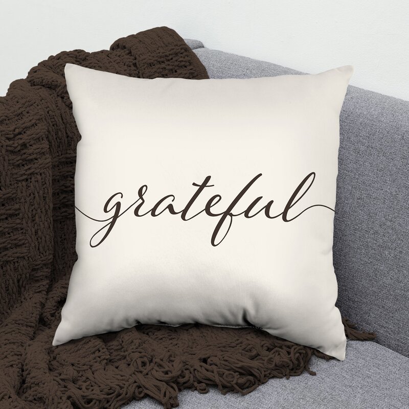 “Grateful” script Thanksgiving or Fall decorative throw pillow.East Urban Home brand 16 inch by 16 inch pillow is made from 100 percent polyester. This dual sided 16 inch pillow shows the same design on both sides for a vibrantly colored, nice looking double sided pillow. Stuffed with a nice and fluffy poly fill, this is a great pillow not only to use as decoration, man cave or guest room, but to use to take a nap after a long day. We recommend to spot clean or hand wash with a light detergent and allow to air dry. This contains 1 pillow. Printed, cut, sewn and filled right here in the USA.