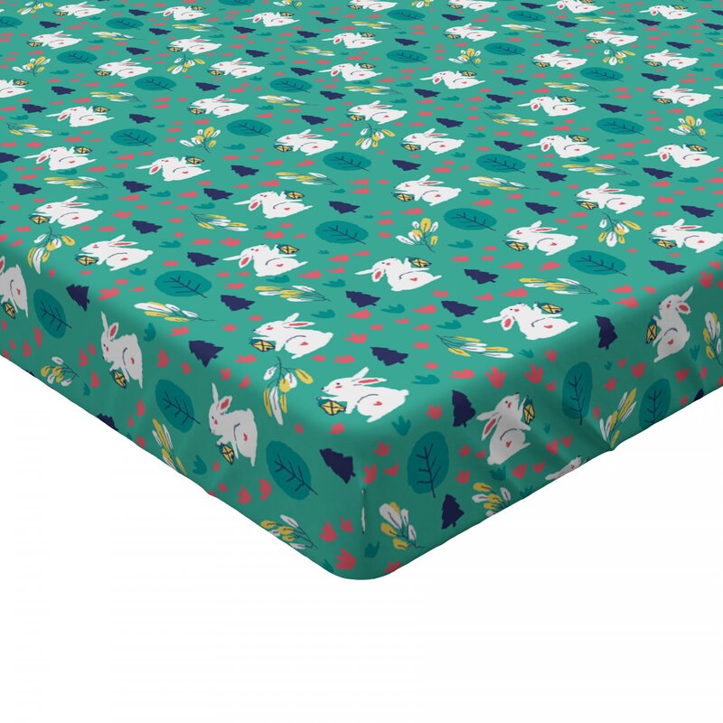 Continuous rabbit pattern small trees flowers
