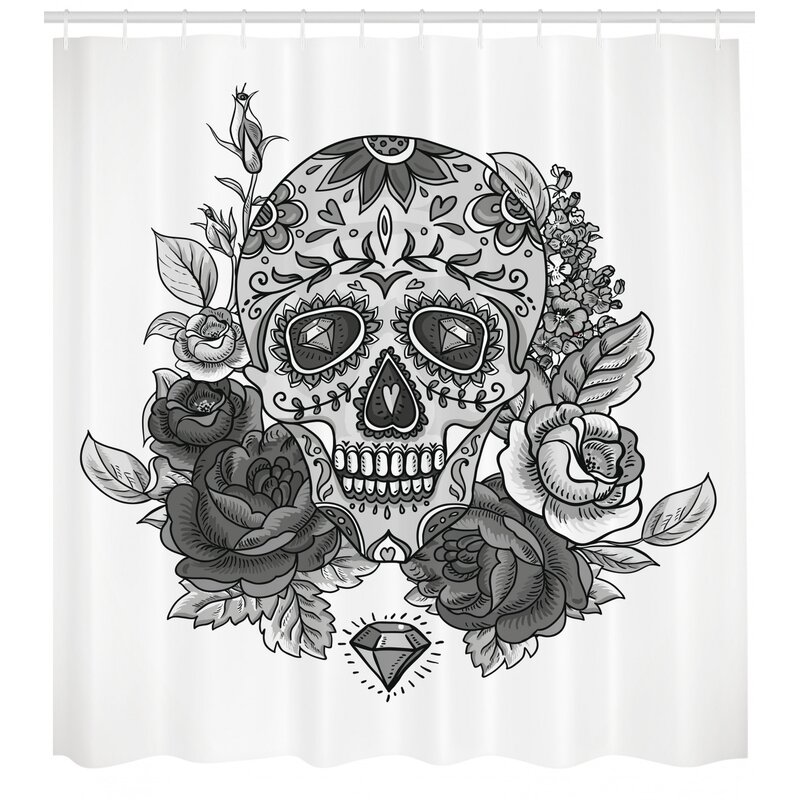 Monochrome skull with roses leaves and diamond shape folklore festival print