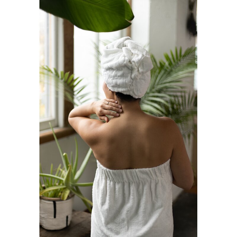 Bath Wrap allows you to walk around in comfort and warmth right out of the shower, sauna, pool, or bath
