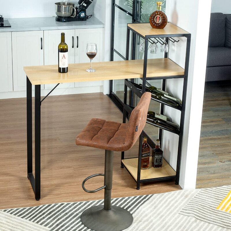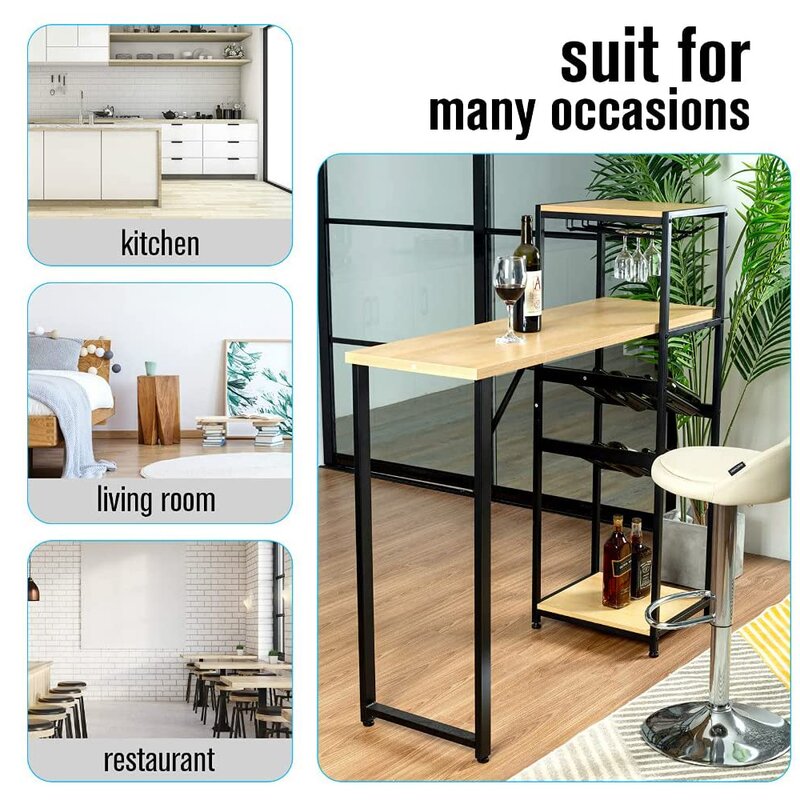 The high kitchen dining table-rectangle bistro table with wine rack and wine glass holder is for the kitchen, dining room, and living room. Placing this bar table in the kitchen or living room will serve as an elegant seat and maintain the exquisite decorative appearance of your home.