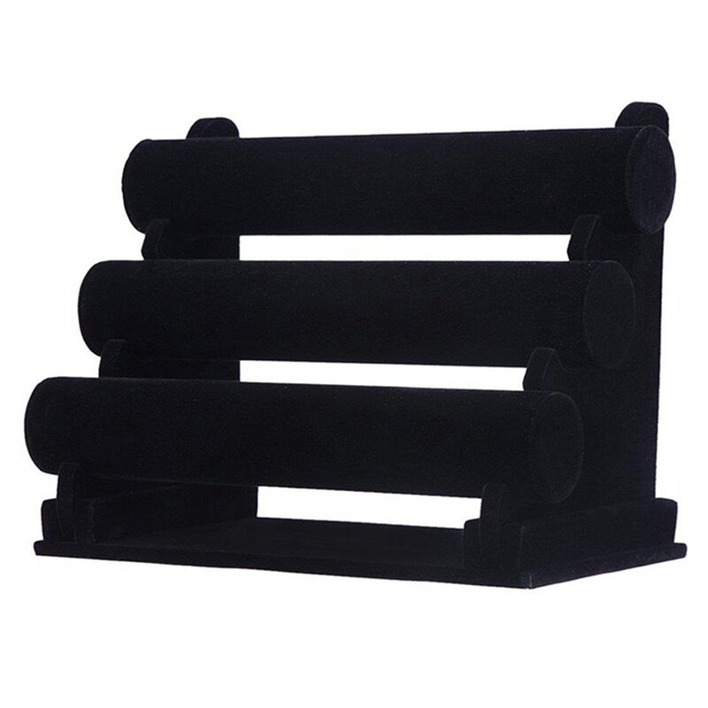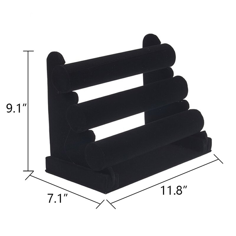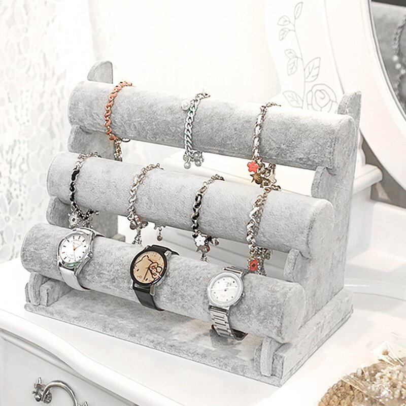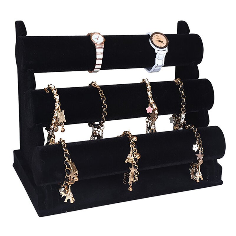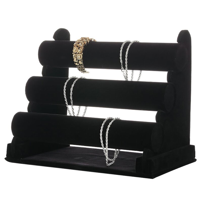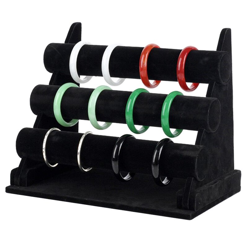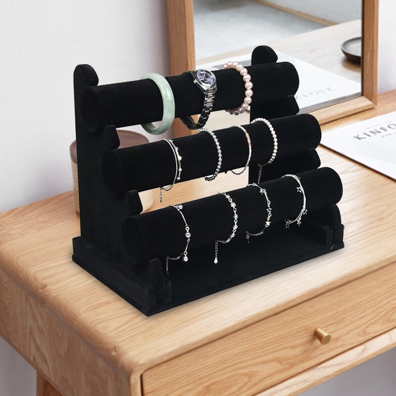 This 3-tier detachable jewelry display stand is made of high-quality velvet with amazing texture. The small rack is made up of bars and supports, suitable for displaying bangles or bracelets. Simple rack design and multi-function selections satisfy your needs.