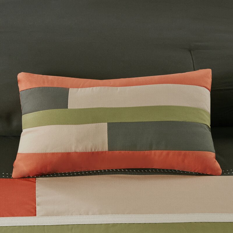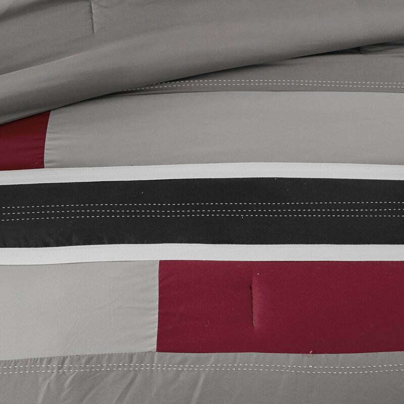 This evry comforter set offers a fresh update to your room. The ultra-soft microfiber comforter boasts a striped pieced design in bold colors, for a casual look with an urban feel. Topstitching and twill tape details highlight the design, creating an eye-catching contrast. Coordinating shams (1 in twin/twin xl) reiterate the comforter’s design, while two decorative pillows use embroidered details and fabric manipulation to complete the slick ensemble. Machine washable for easy care, this comforter set provides a fun and stylish update to your bedroom. This bedding set also uses an antimicrobial treatment that provides built-in freshness protection, reducing the growth of odor-causing bacteria to keep the fabric last longer.