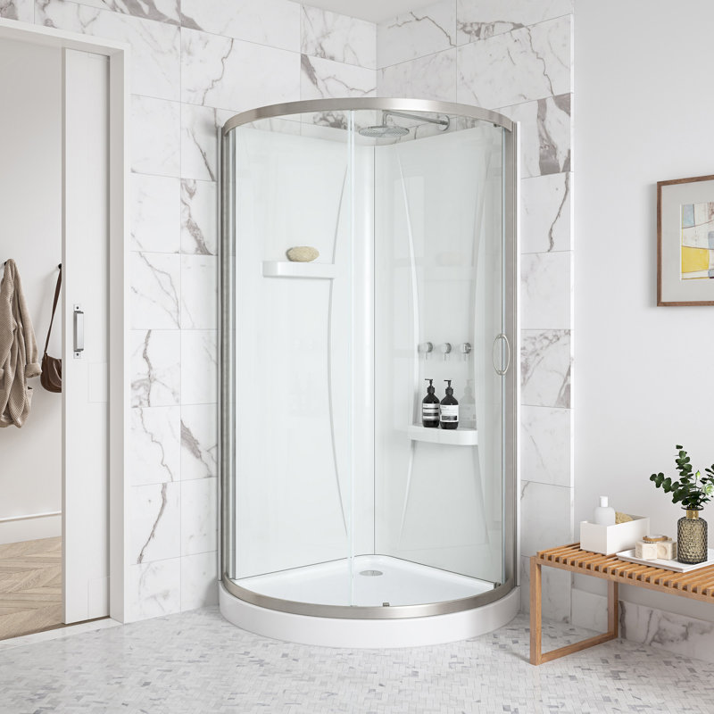 This is the perfect shower kit for any sized bathroom. This Harta is the ideal shower kit for smaller to mid-sized bathrooms. Benefit from the rounded acrylic base and the premium frosted sliding door. A two-piece kit allows for a complete and painless installation.