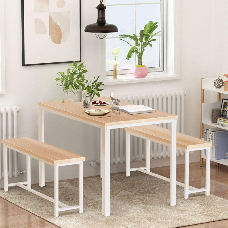 Space Saving: This 4-person space-saving dinette with compact size is perfect for dorms or other rooms with limited space. Both two benches can be tucked under the standard height table for space-saving storage when not in use. Meanwhile, you can also use the bench as an independent seat.