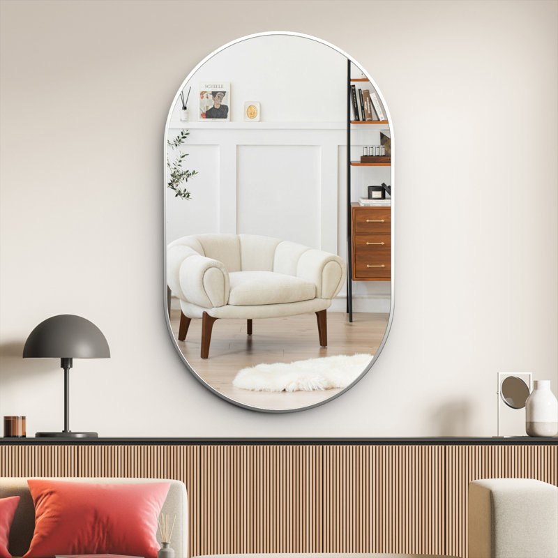 Inspired by modern design, the mirror features a geometric look with an oval capsule shape. This gives it a classy, minimalistic look that makes it the perfect centerpiece for your bathroom and your bedroom. The mirror surface is the best you will find, with its strong, splash-proof, and shatter-proof material. The reflection is clear and real, with no distortion, which gives you a natural visual experience. We believe wall mirrors will not only brighten up your space but also add visual depth, which brings simple sophistication to the room. It also has a special protective layer that prevents blackening and thermal damage. This oval mirror utilizes a streamlined clean line design, whether you’re adding light to a living space or bringing in the finishing touch to your bathroom, entryway, or vanity, this oval wall mirror makes a timeless, high-quality addition.