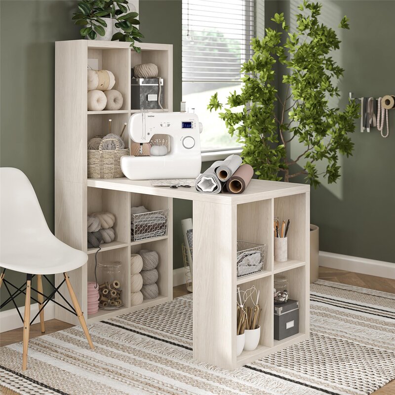 Far superior to your typical work desk, the desk not only has a large work surface but also offers plenty of storage space to keep any room organized. The 12 storage cubbies provide plenty of space to store books, binders, and craft supplies. Whether you’re using this desk in your home office or your craft space, you’ll love its unique design and exceptional features. This Desk keeps all your essentials within arm’s reach, but also keeps your workspace clutter-free. The smooth finish seamlessly blends with any décor and the sturdy engineered wood build makes this desk both affordable and dependable. The desk ships in a box and requires assembly. Once assembled the desk measures to be 58.6″ H x 47.4″ W x 26.4 â€D. Assembled weight: 75.24 lbs.