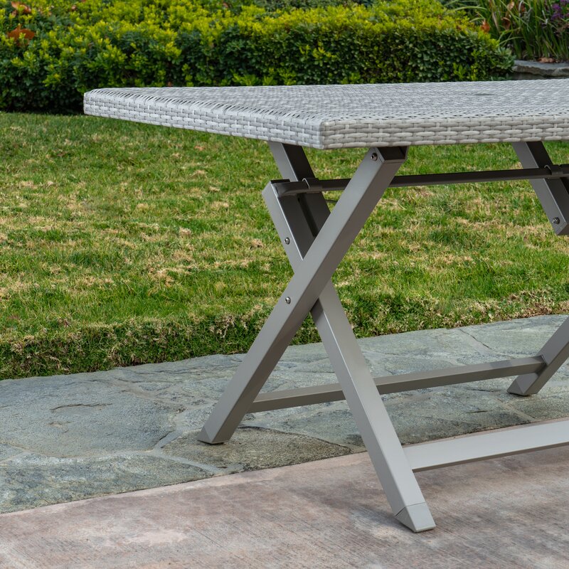 Pull up a chair and enjoy dinner outside with the Spector 4 Person Folding Wicker Dining Table. This stylish dining table in gray woven resin wicker is designed to accent any decor. This folding table design allows you to easily store away when not in use. This table is also perfect to bring along for camping or tailgating.