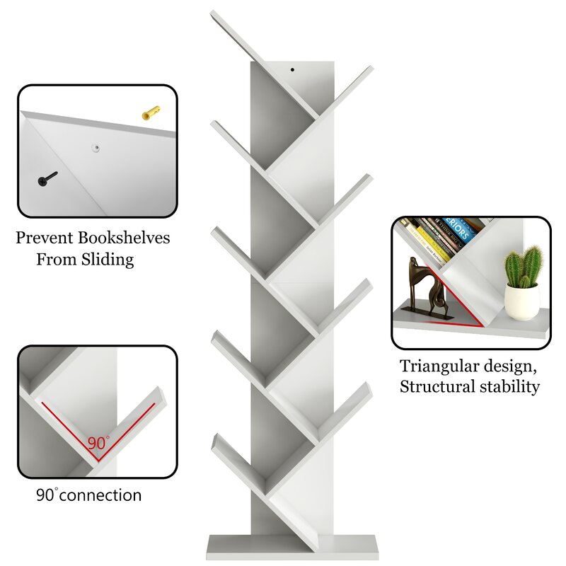 9-shelf tree bookshelf – save space design: with unique 9-shelf tree-like structures, fill the multi-levered branches with your favorite books to create an eye-catching display. It will only occupy a small area, very suitable for the apartment, living room, home, and office