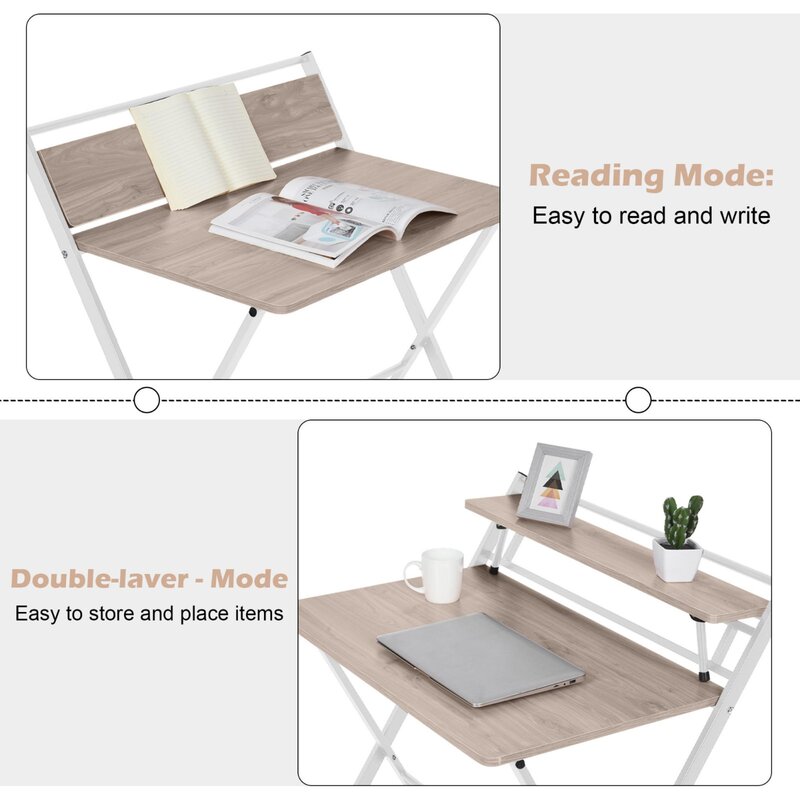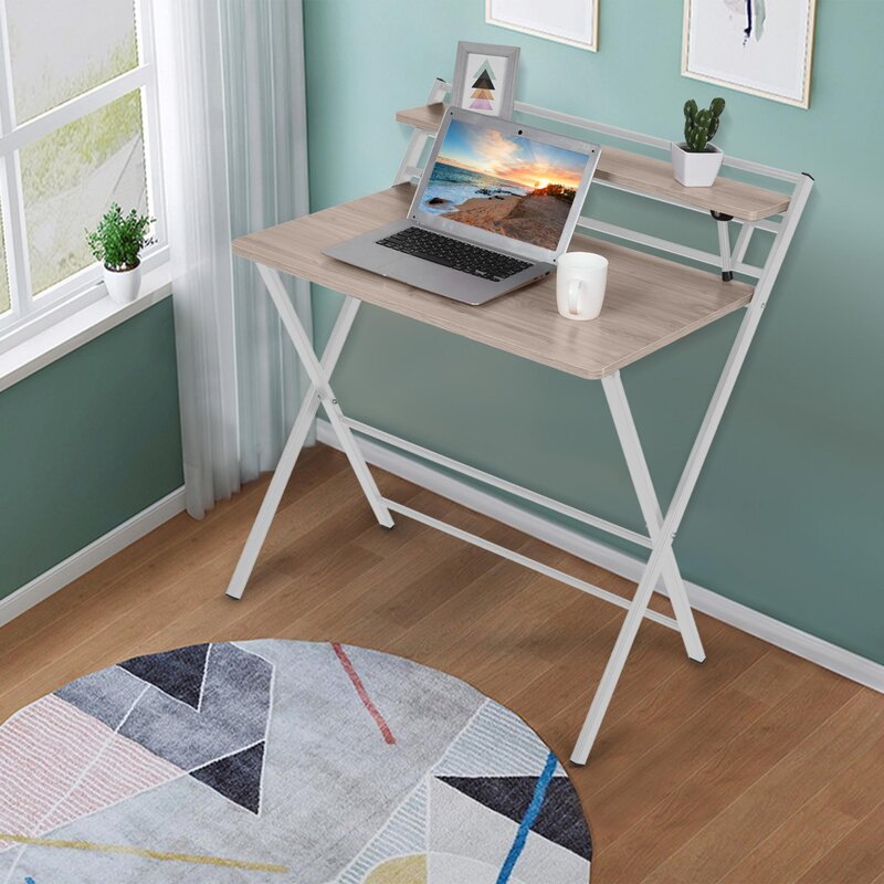 Rugged and durable: The folding desk with shelf is made of 1.5cm (0.59) MDF and high-quality steel frame, which is very stable and can be used for many years. X-shaped metal legs enhances the stability of the desk.