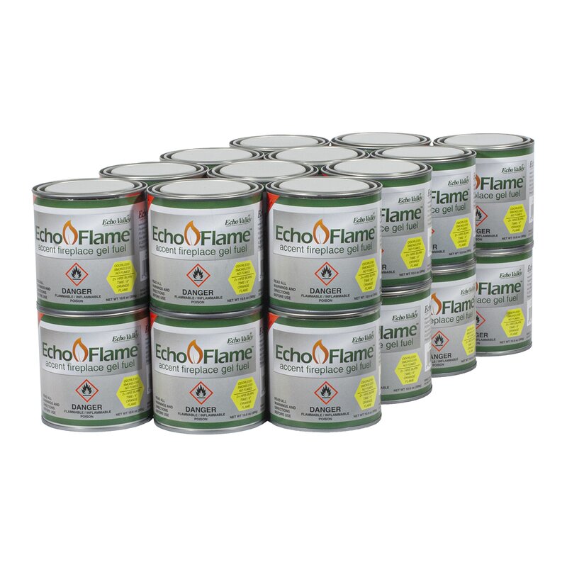 An easy-to-use, hassle-free, clean-burning bio-gel fuel can be designed to work with all their echo-flame accent fireplaces. No smoke, ashes, or soot to deal with. Just a maintenance-free way to enjoy a beautiful fire. With 6,800 BTUs of heat per can, gel fuel is a great way to help take the chill out on those cool nights. Each fuel can burn brightly for 2.5+ hrs with the crackling sound of a wood fire without the cost or hassle. Designed to burn straight from the can. For best results, do not remove fuel from a can, simply remove the lid and light.
